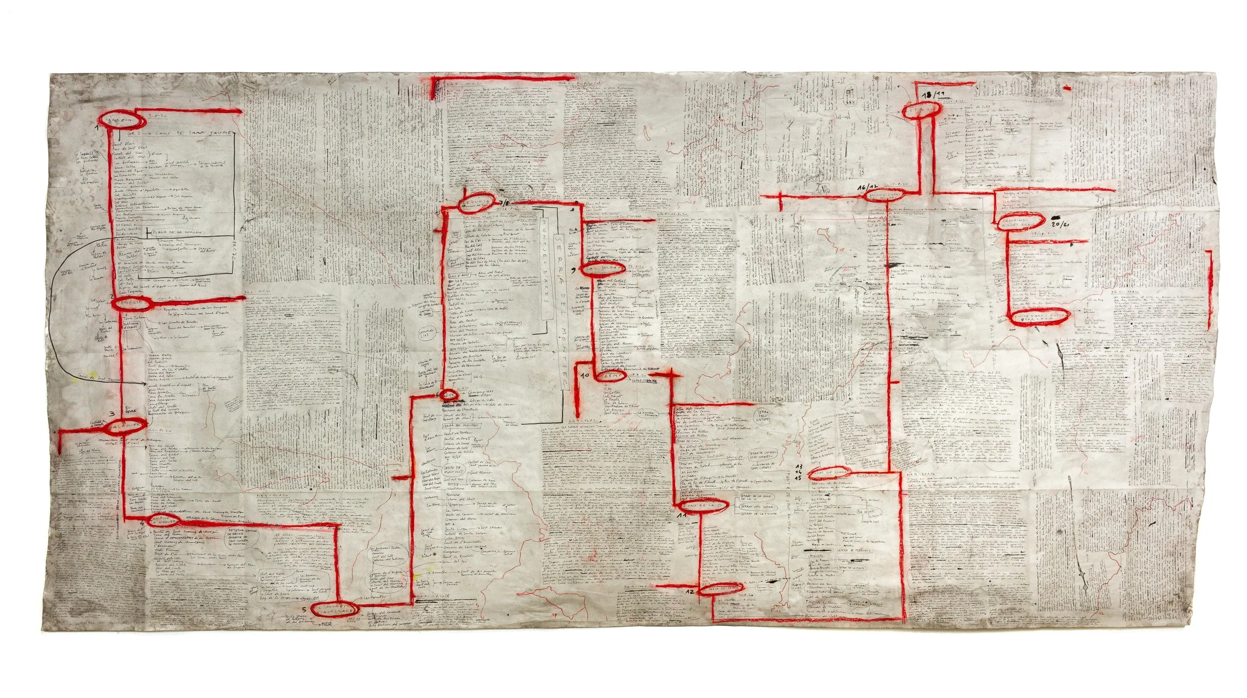 Mapa del viaje (La Entrega I), 2018, técnica mixta sobre papel, 200 × 150 cm