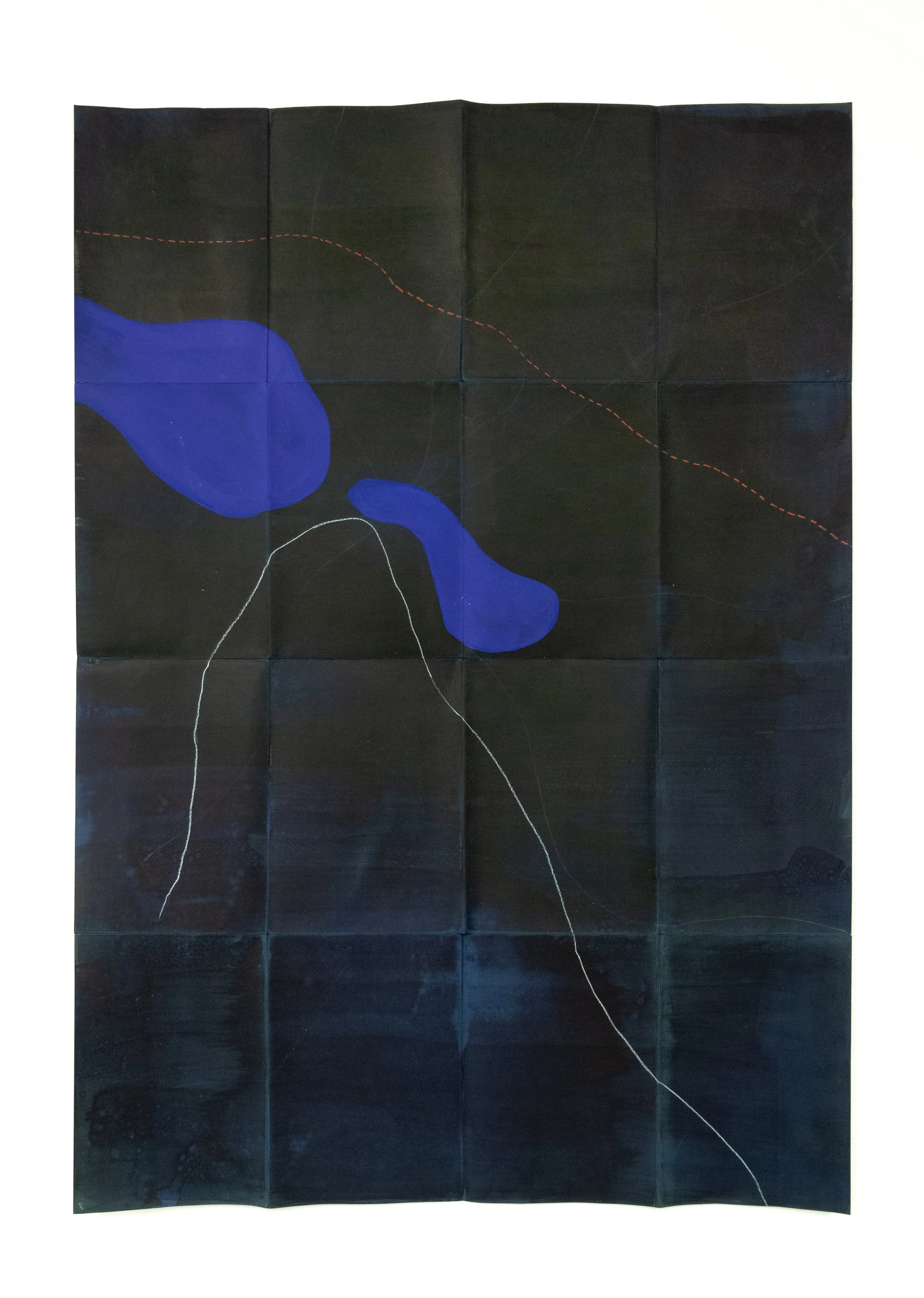 Mapa nocturno I, 2018, técnica mixta sobre papel, 110 × 70 cm