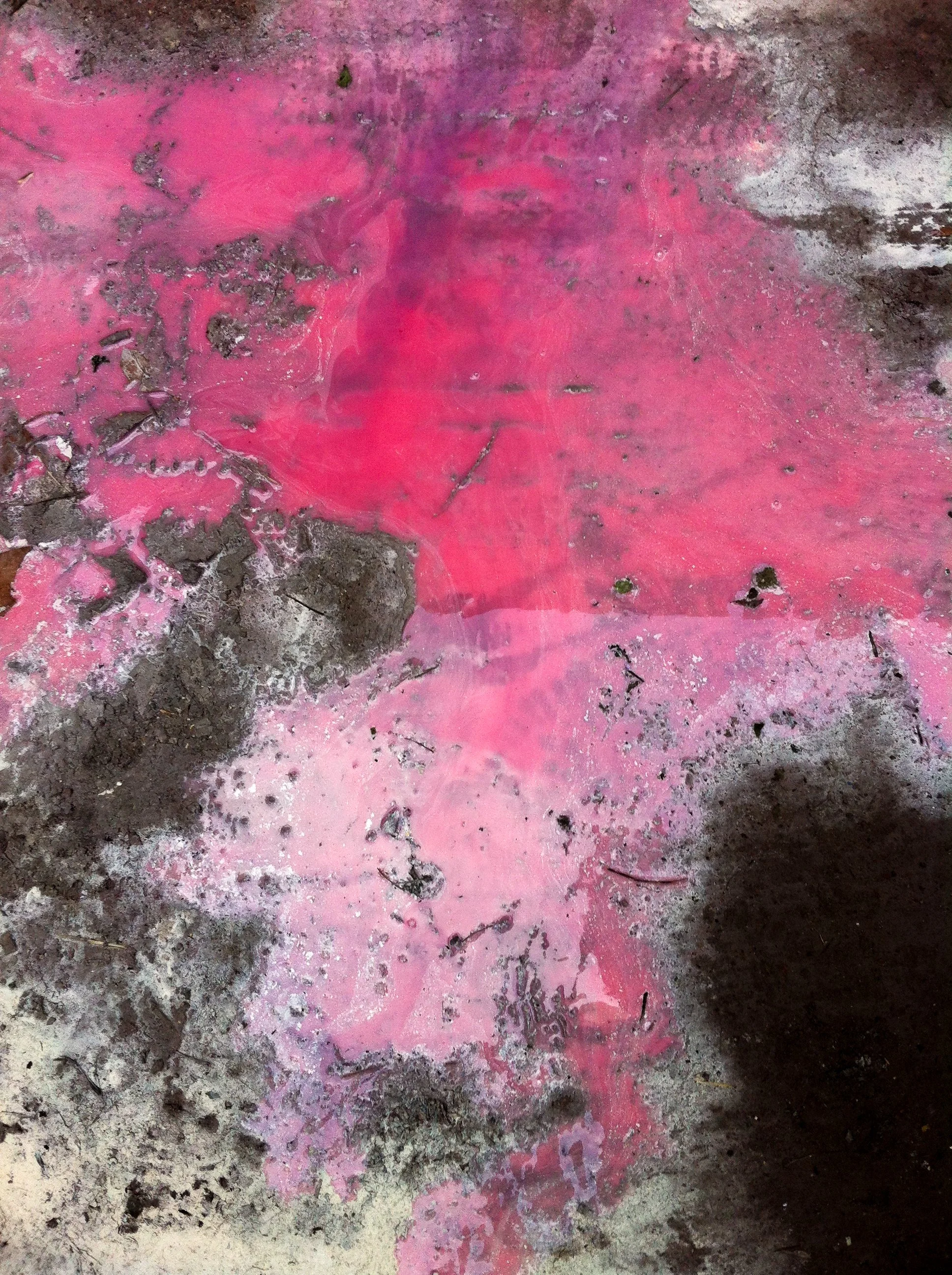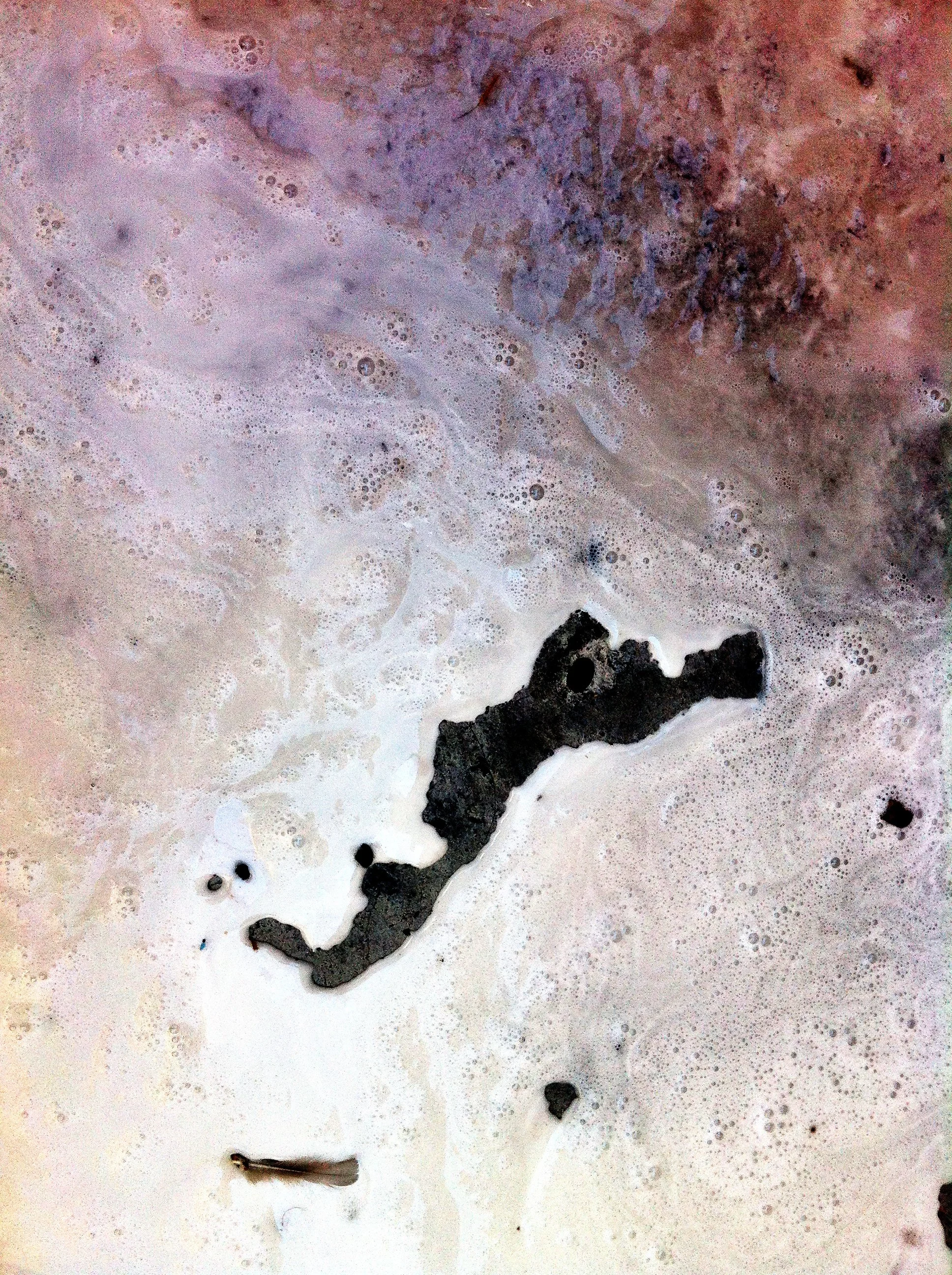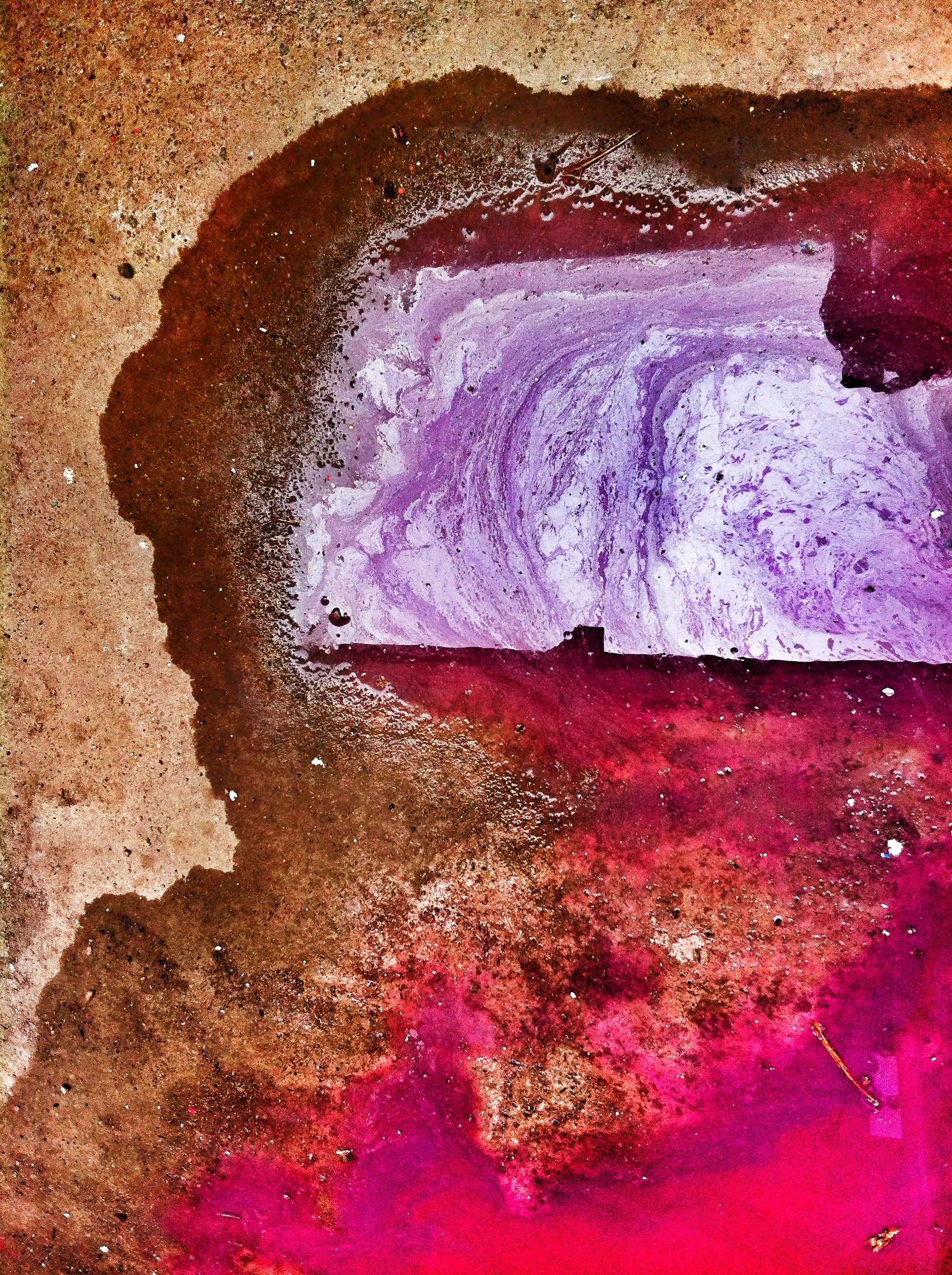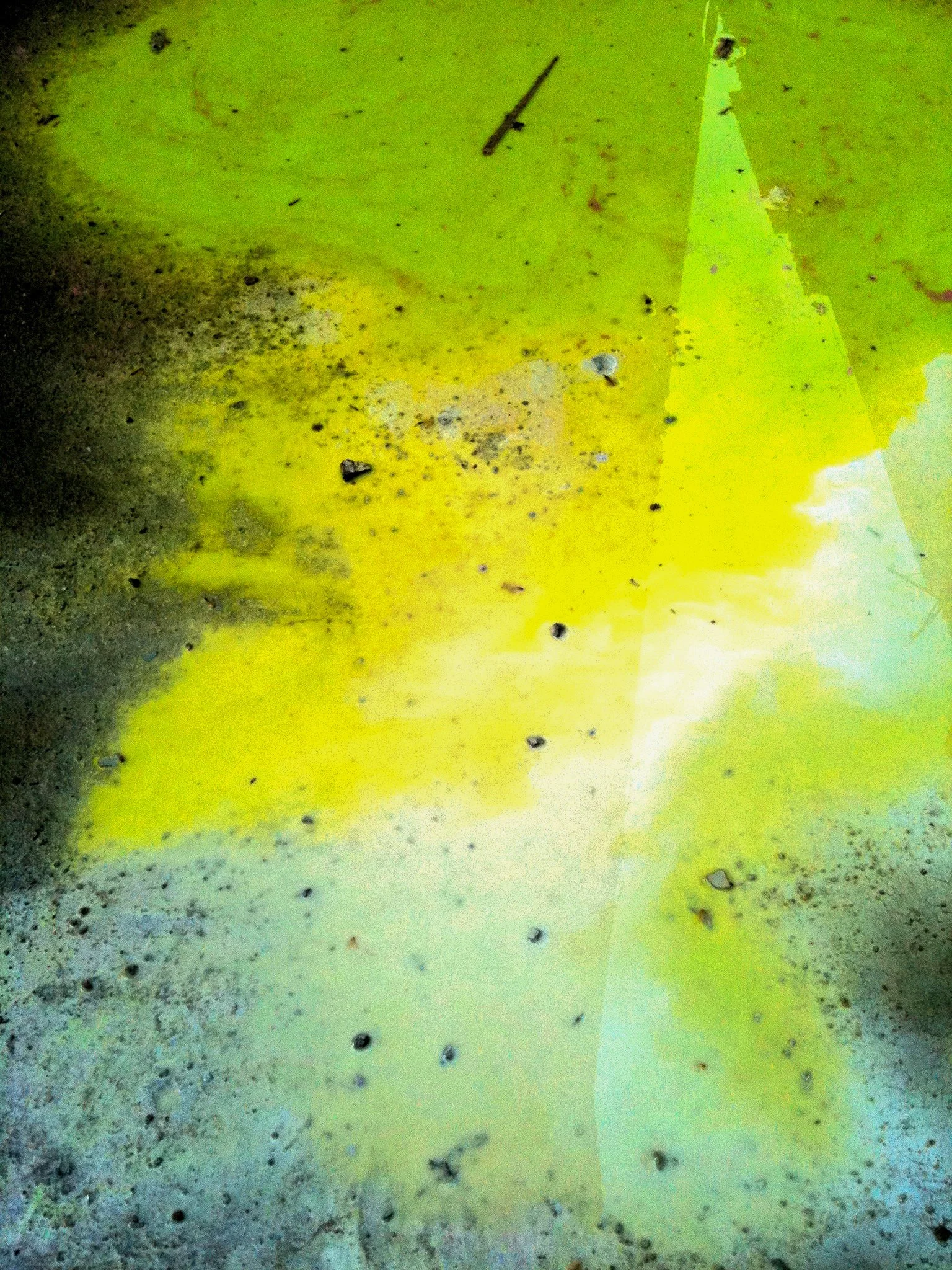 En el pasillo interior de La Escocesa (centro de creación artística en Barcelona), entre escombros y grafitis, hay un fregadero donde los artistas limpian sus pinceles y herramientas. Justo debajo de ese fregadero, alrededor del desagüe, se forma un charco de un metro cuadrado lleno de color: allí encuentra Marco Noris la fuente de sus informalismos. Durante cuatro años, ese charco cambiante fue su lienzo: un lienzo efímero que encarna la impermanencia. A través de este gesto, el artista rinde homenaje al lugar que ha sido testigo y refugio de su crecimiento artístico y personal a lo largo de los últimos seis años.