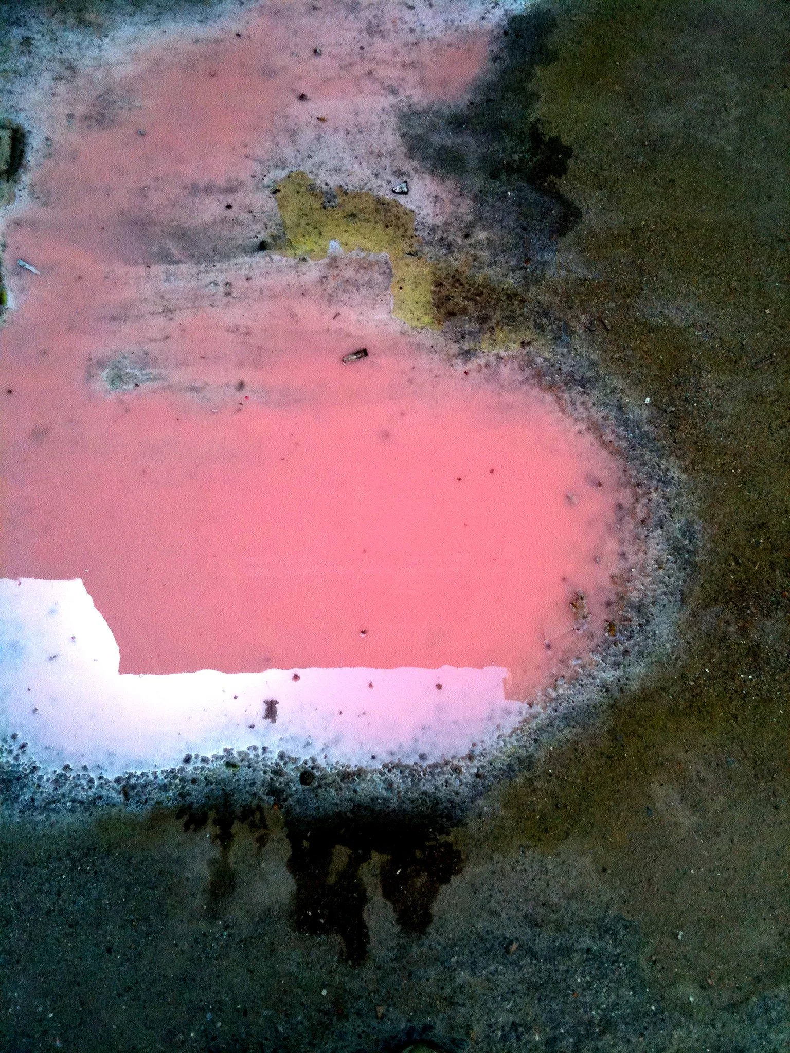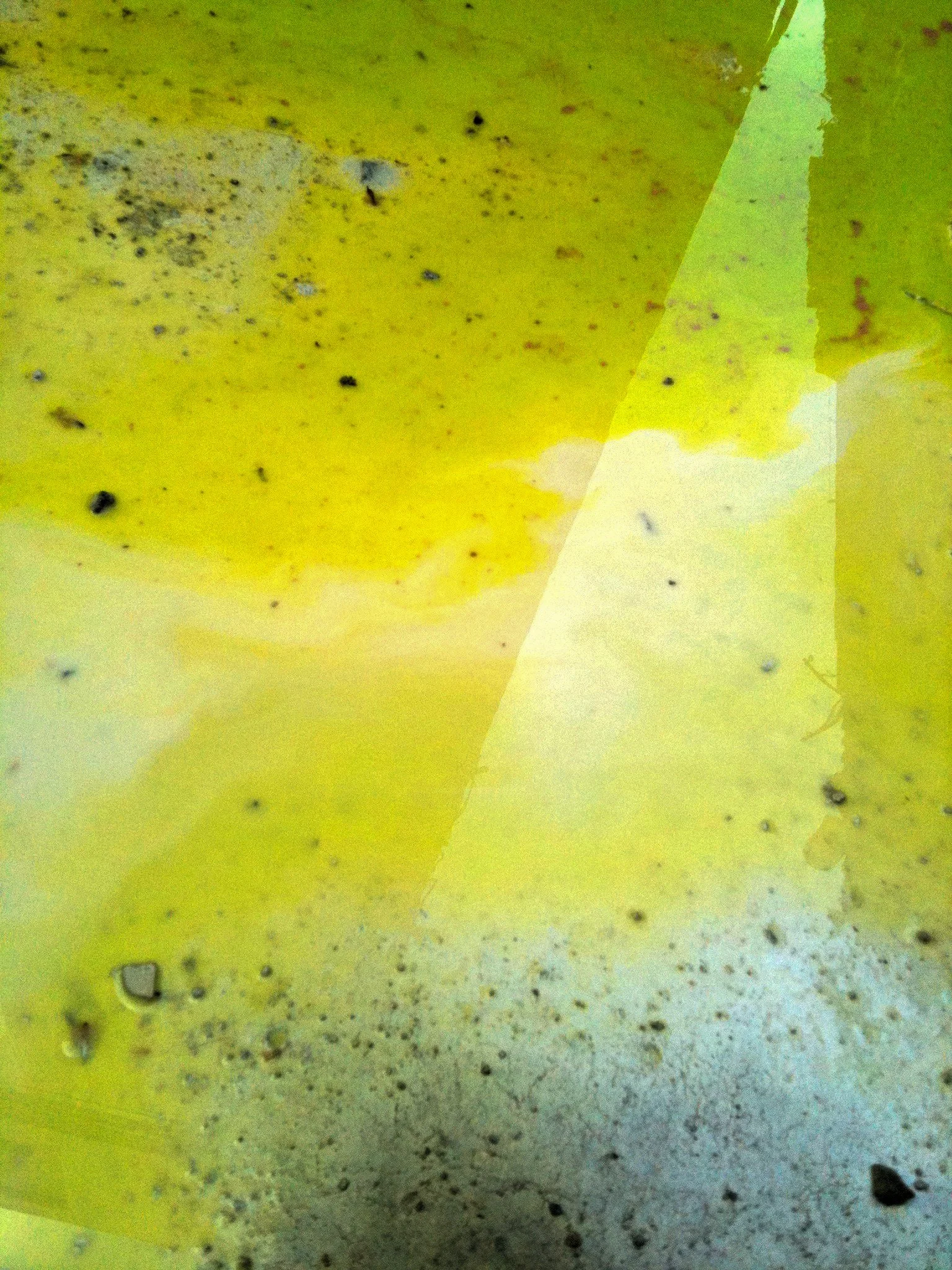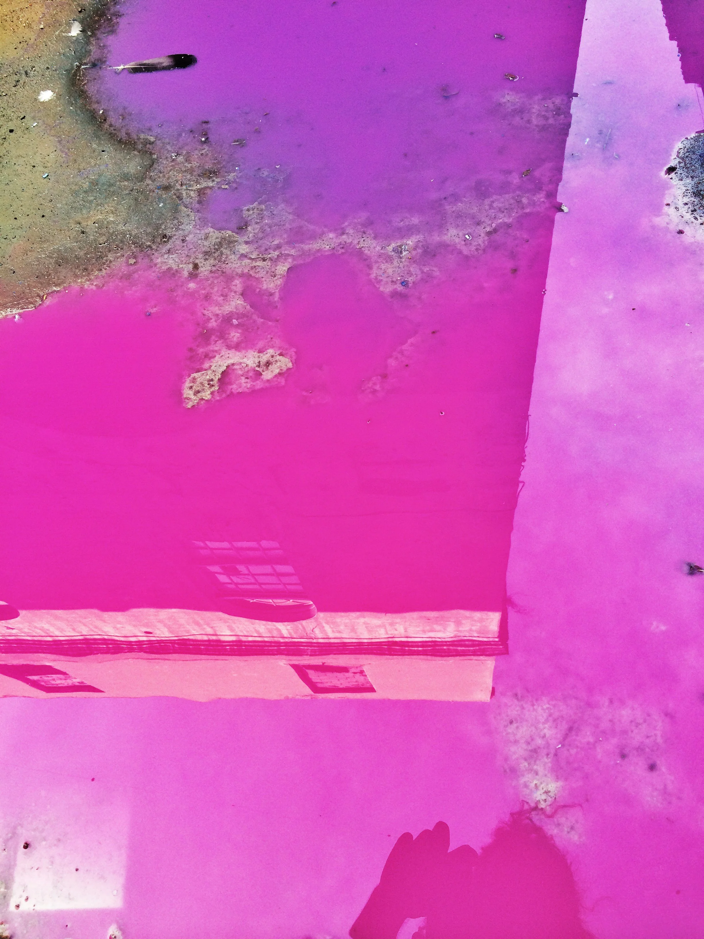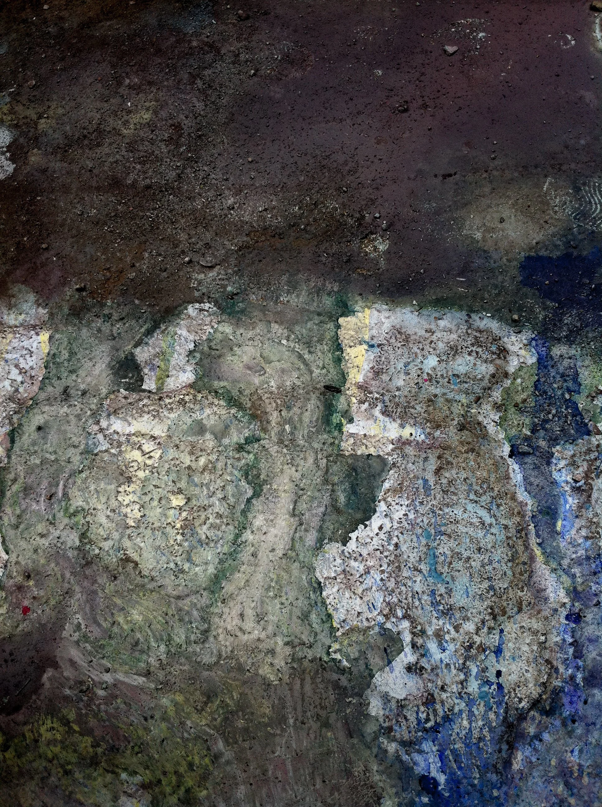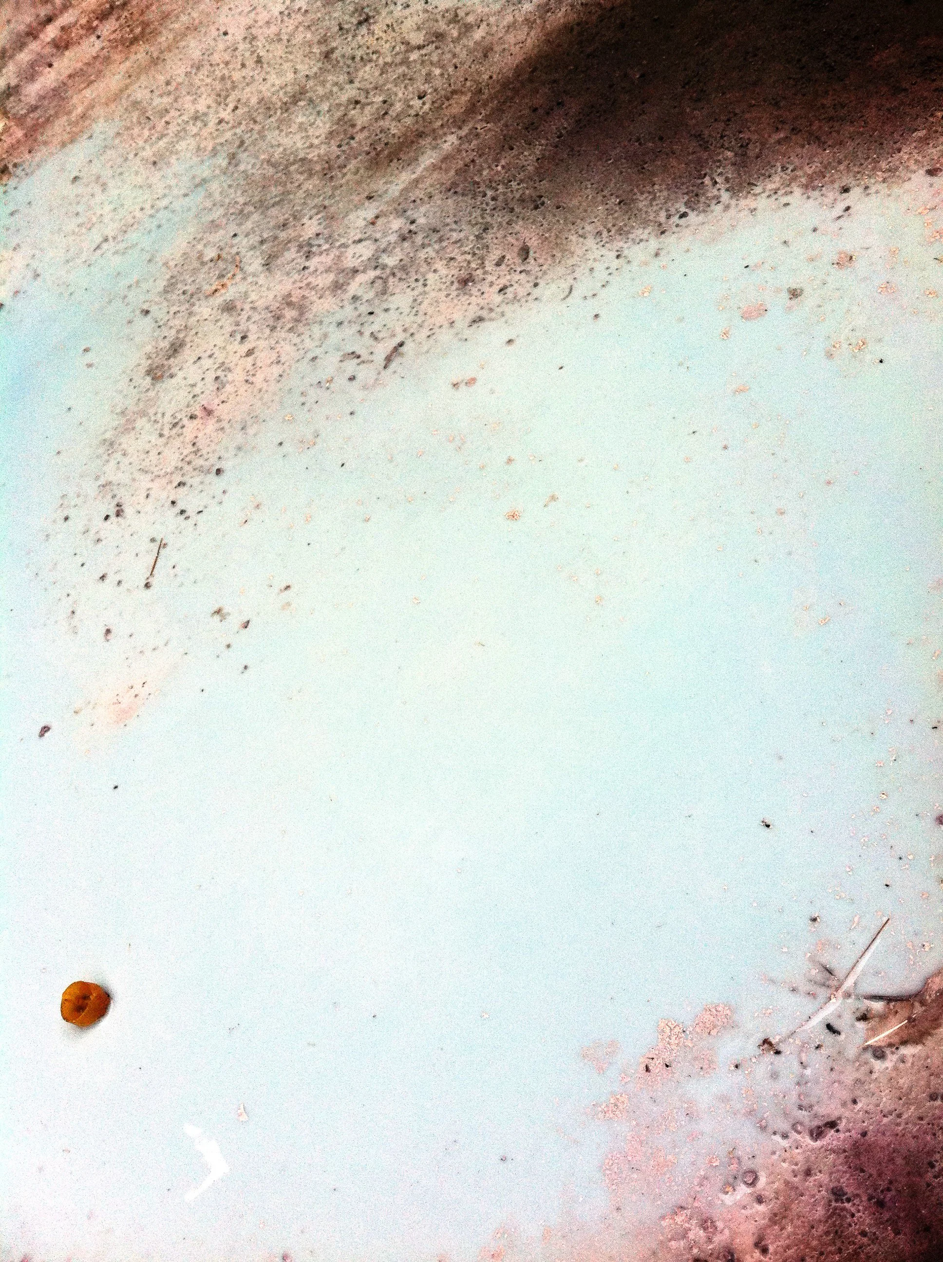 En el pasillo interior de La Escocesa (centro de creación artística en Barcelona), entre escombros y grafitis, hay un fregadero donde los artistas limpian sus pinceles y herramientas. Justo debajo de ese fregadero, alrededor del desagüe, se forma un charco de un metro cuadrado lleno de color: allí encuentra Marco Noris la fuente de sus informalismos. Durante cuatro años, ese charco cambiante fue su lienzo: un lienzo efímero que encarna la impermanencia. A través de este gesto, el artista rinde homenaje al lugar que ha sido testigo y refugio de su crecimiento artístico y personal a lo largo de los últimos seis años.