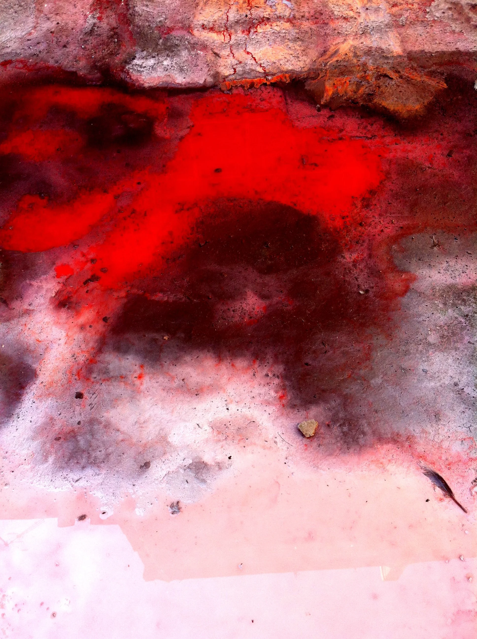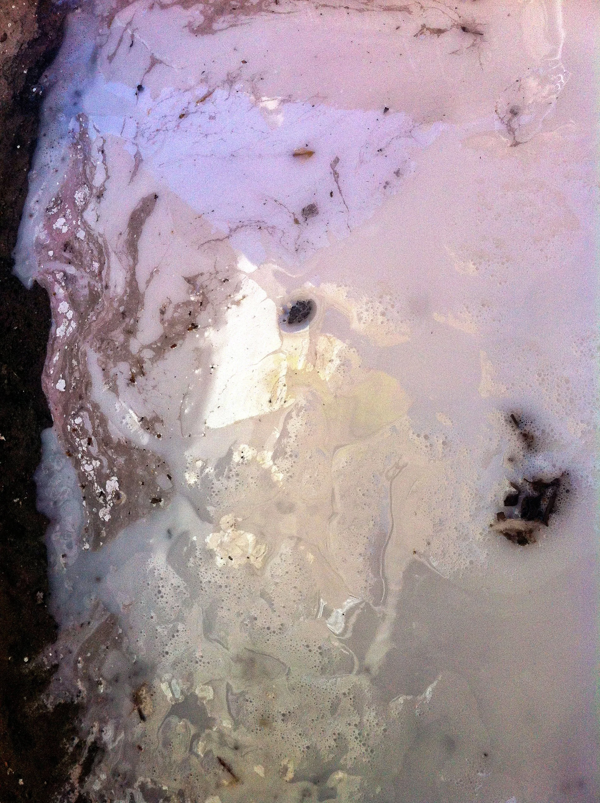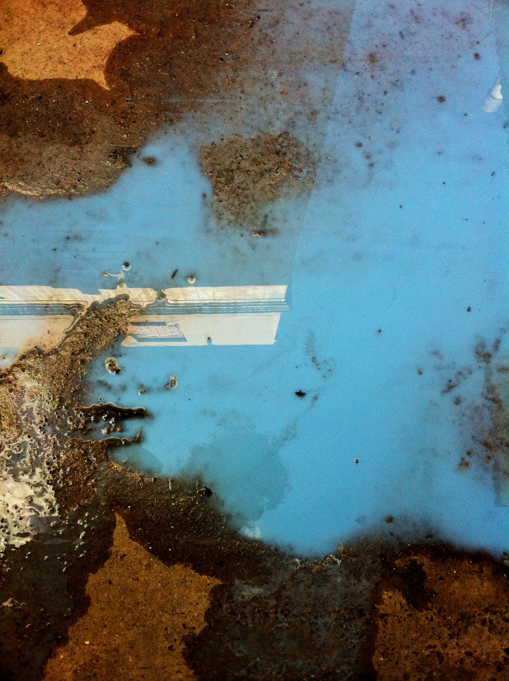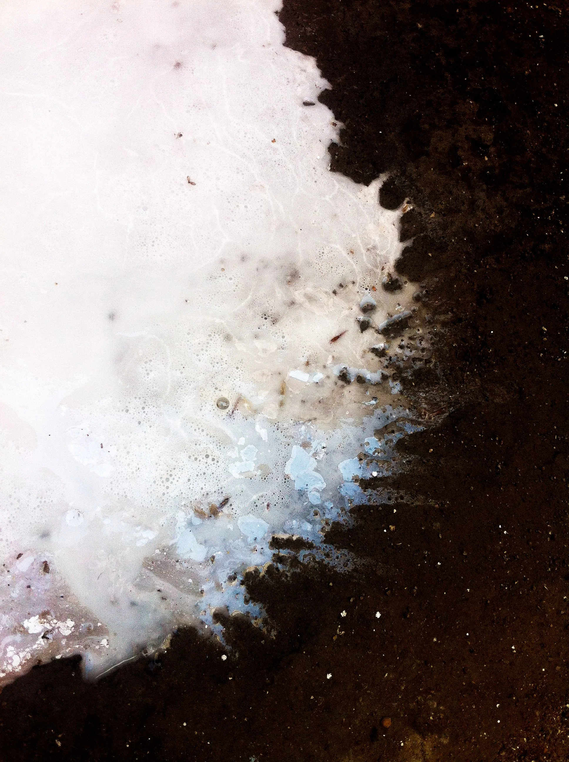 En el pasillo interior de La Escocesa (centro de creación artística en Barcelona), entre escombros y grafitis, hay un fregadero donde los artistas limpian sus pinceles y herramientas. Justo debajo de ese fregadero, alrededor del desagüe, se forma un charco de un metro cuadrado lleno de color: allí encuentra Marco Noris la fuente de sus informalismos. Durante cuatro años, ese charco cambiante fue su lienzo: un lienzo efímero que encarna la impermanencia. A través de este gesto, el artista rinde homenaje al lugar que ha sido testigo y refugio de su crecimiento artístico y personal a lo largo de los últimos seis años.