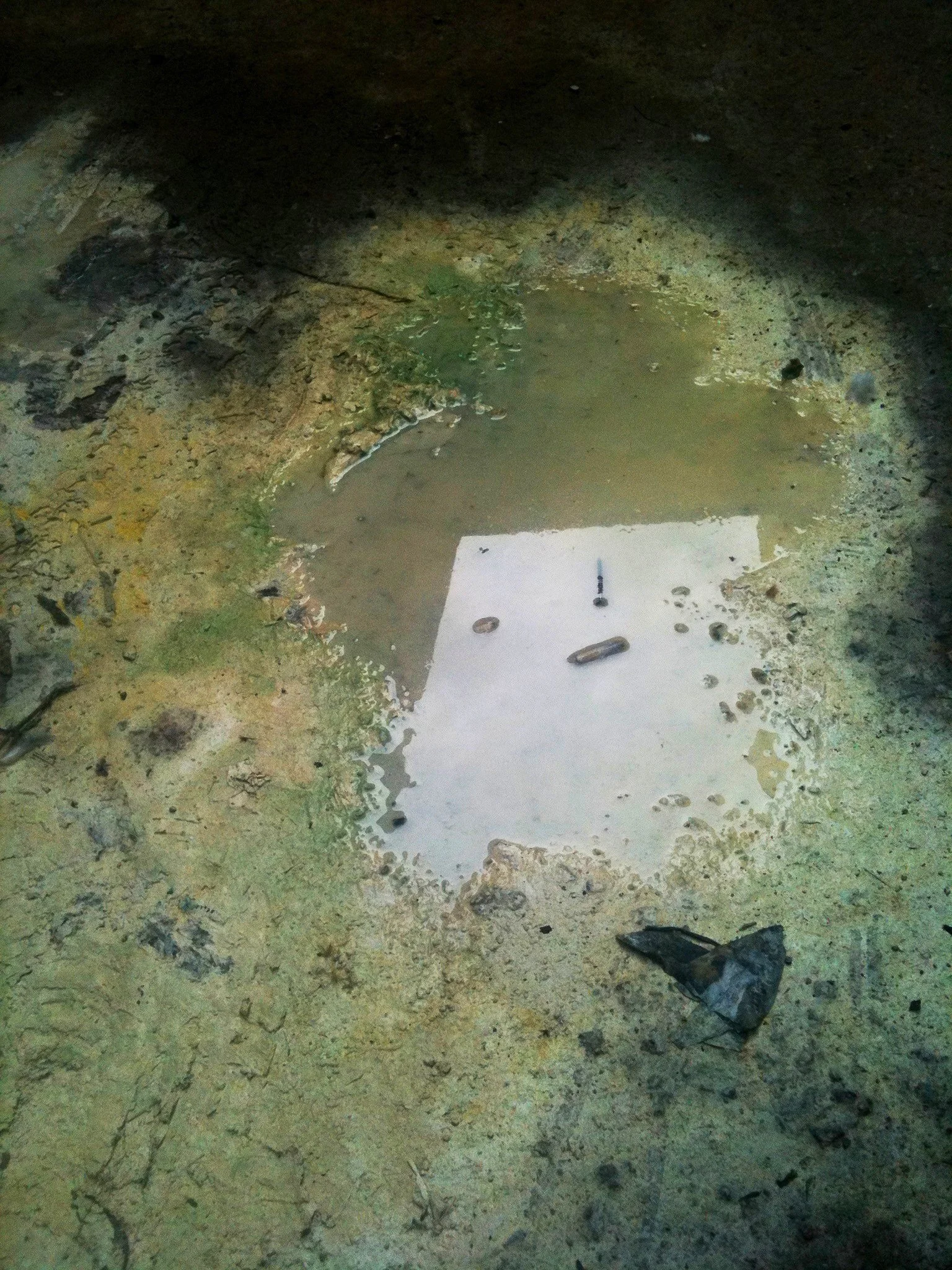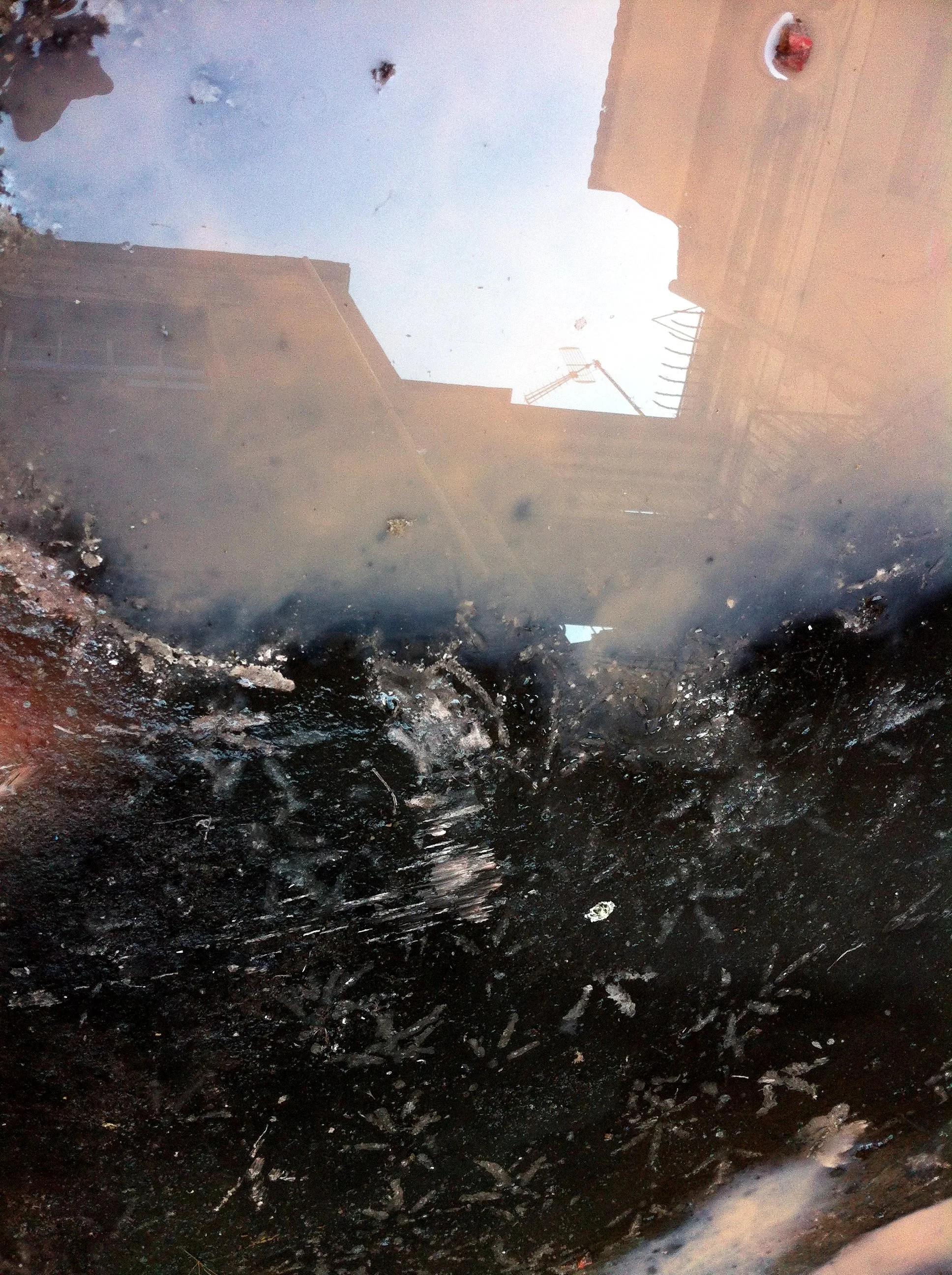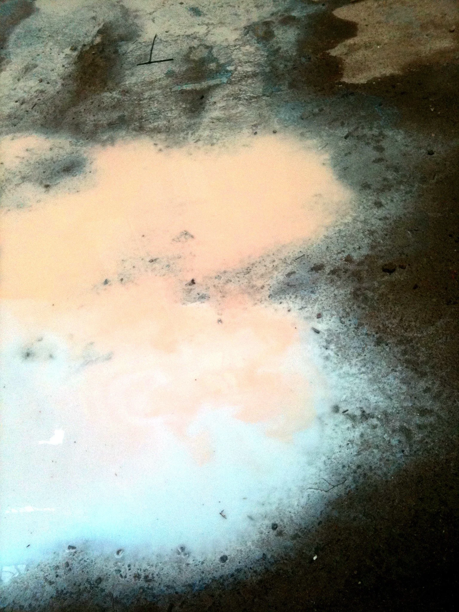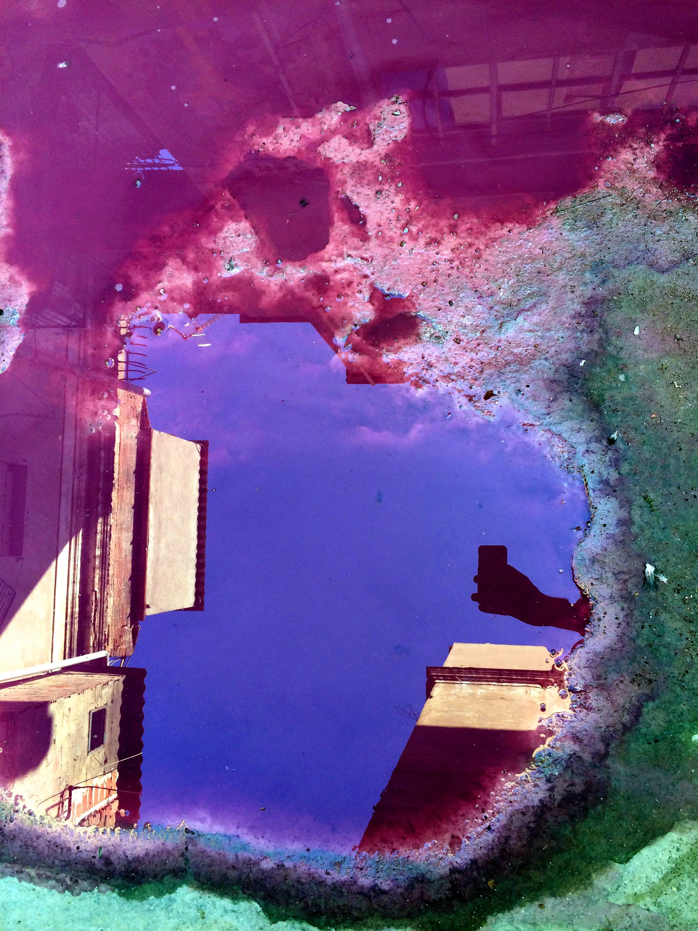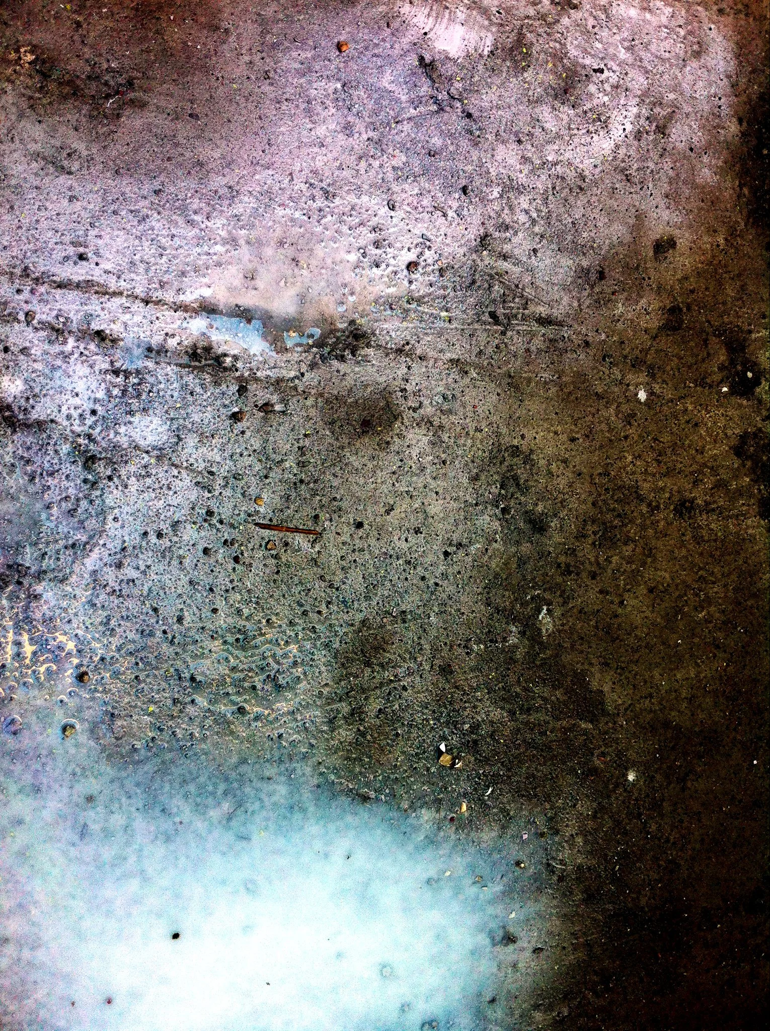 En el pasillo interior de La Escocesa (centro de creación artística en Barcelona), entre escombros y grafitis, hay un fregadero donde los artistas limpian sus pinceles y herramientas. Justo debajo de ese fregadero, alrededor del desagüe, se forma un charco de un metro cuadrado lleno de color: allí encuentra Marco Noris la fuente de sus informalismos. Durante cuatro años, ese charco cambiante fue su lienzo: un lienzo efímero que encarna la impermanencia. A través de este gesto, el artista rinde homenaje al lugar que ha sido testigo y refugio de su crecimiento artístico y personal a lo largo de los últimos seis años.
