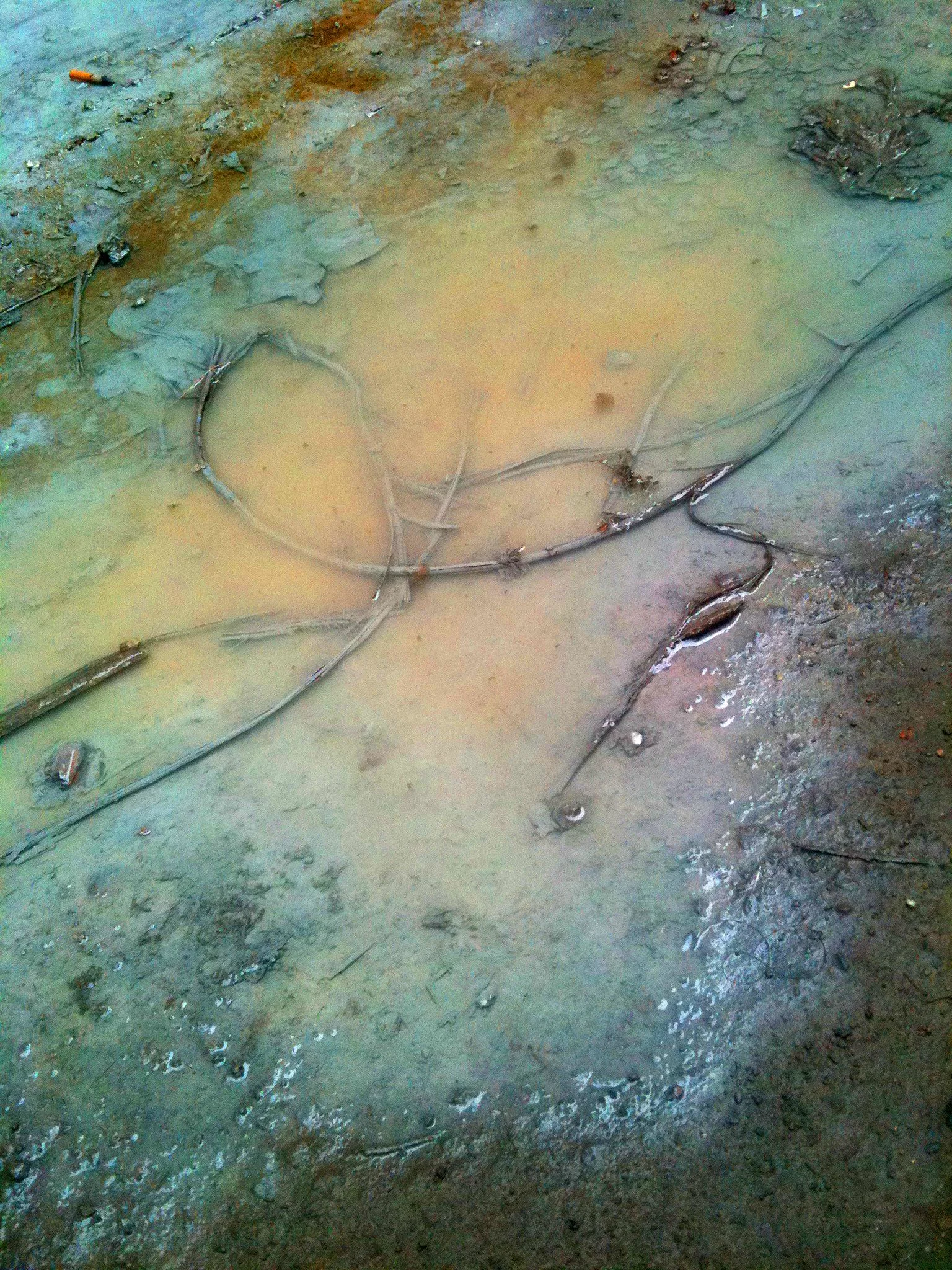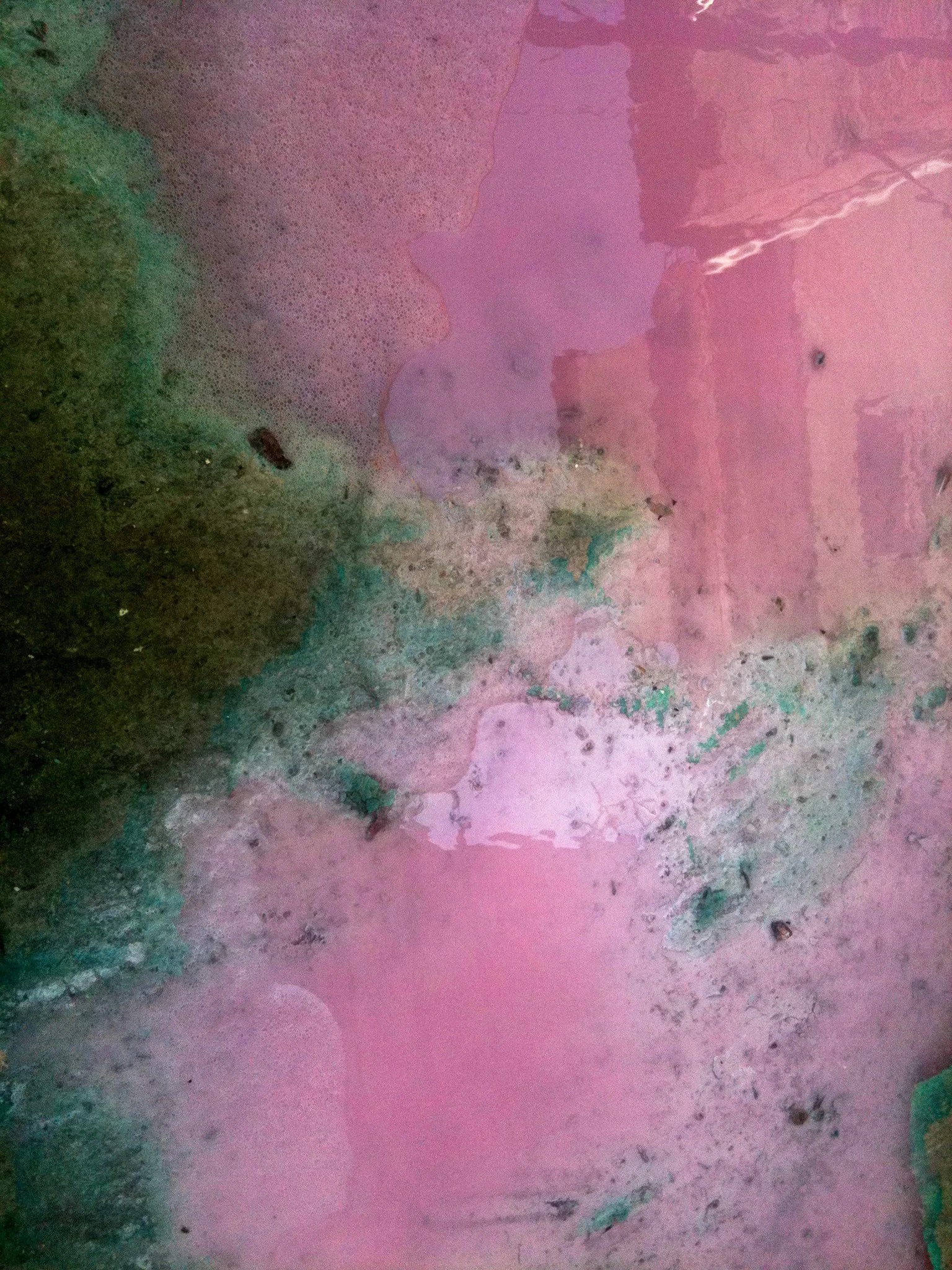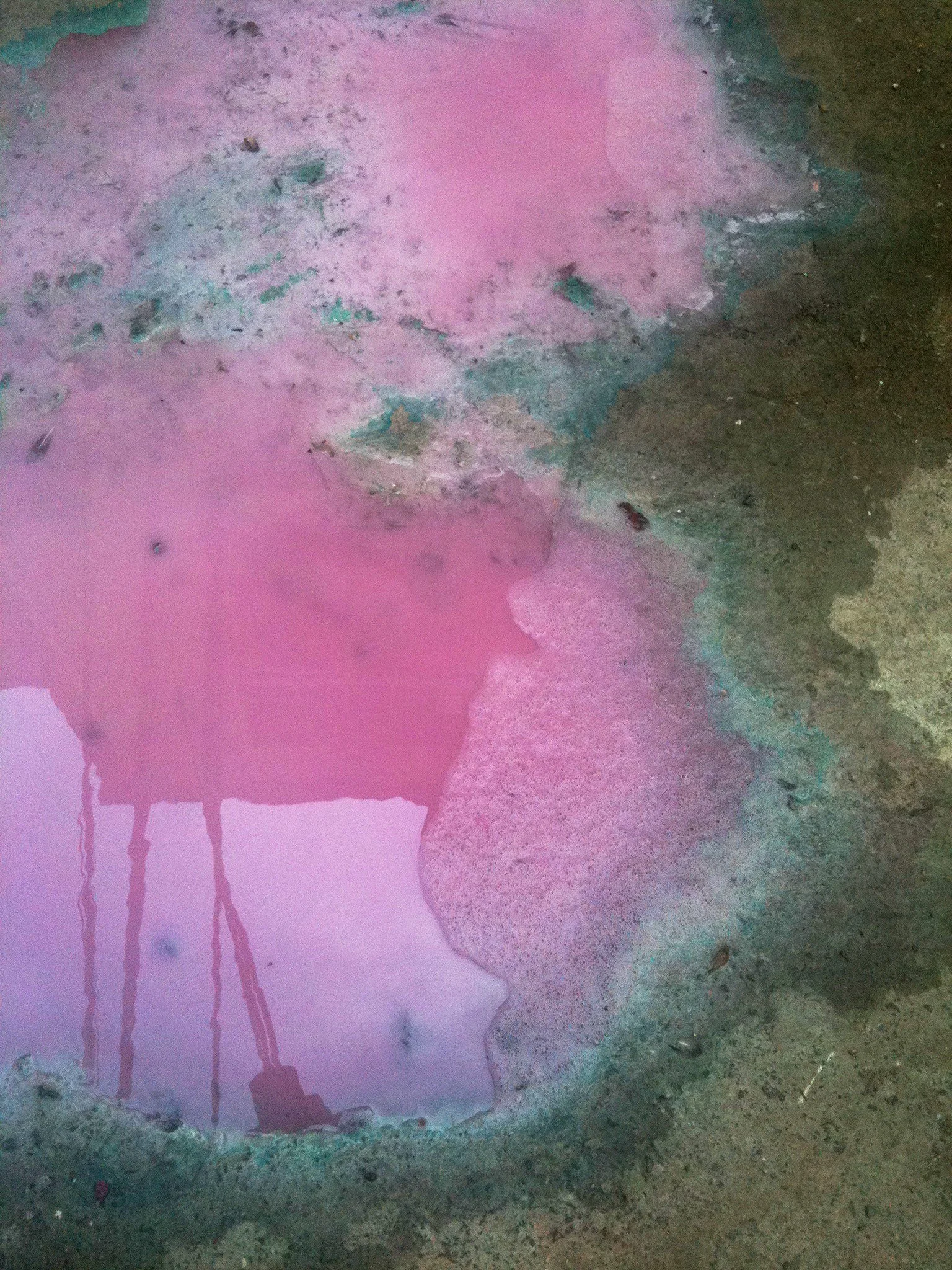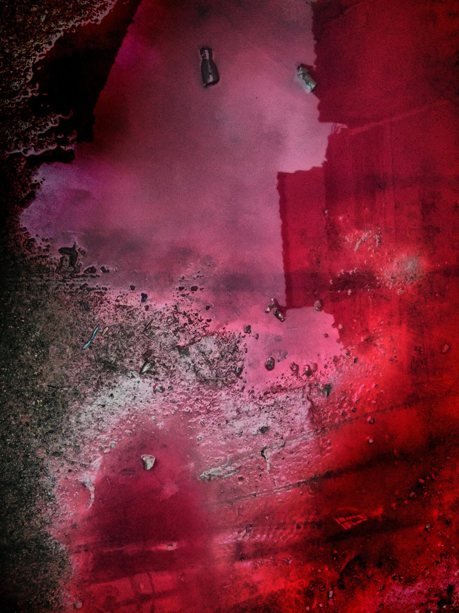 En el pasillo interior de La Escocesa (centro de creación artística en Barcelona), entre escombros y grafitis, hay un fregadero donde los artistas limpian sus pinceles y herramientas. Justo debajo de ese fregadero, alrededor del desagüe, se forma un charco de un metro cuadrado lleno de color: allí encuentra Marco Noris la fuente de sus informalismos. Durante cuatro años, ese charco cambiante fue su lienzo: un lienzo efímero que encarna la impermanencia. A través de este gesto, el artista rinde homenaje al lugar que ha sido testigo y refugio de su crecimiento artístico y personal a lo largo de los últimos seis años.