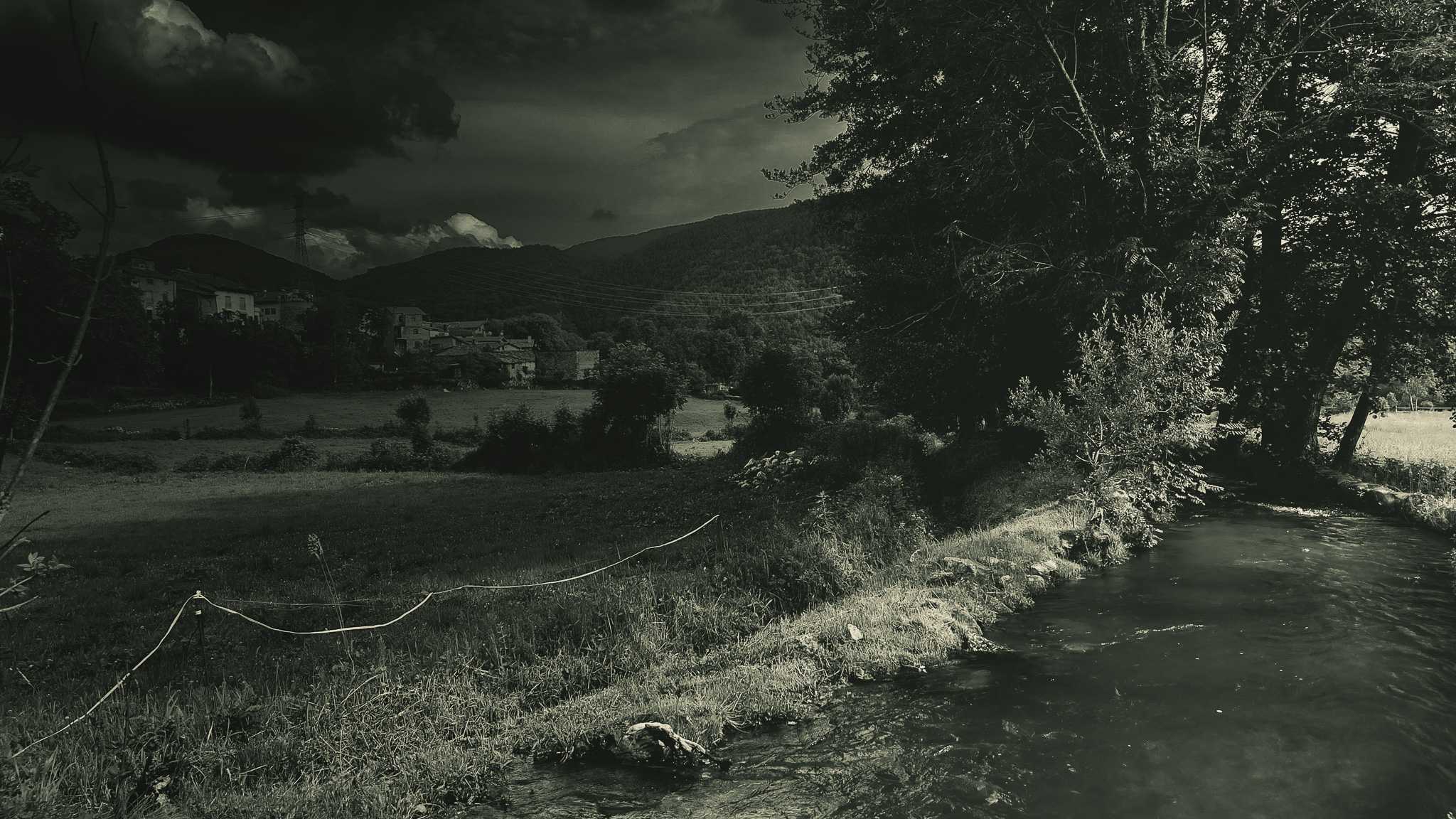 El riu és un cos: té pols, temperatura, memòria. Flueix com flueix la sang, portant amb ell tot allò que ha tocat —la roca, l'arrel, la pluja, el nom antic que algú li va donar abans que existissin els mapes. Un riu té peu, colze, boca. Té un cap i és en un llit. Ho recorda tot. El portem dintre perquè som, en bona part, l'aigua que hem begut, el riu que ens ha travessat. El riu no és un nom: és un verb (Inspirat en "The First Water Is the Body" de Natalie Diaz).